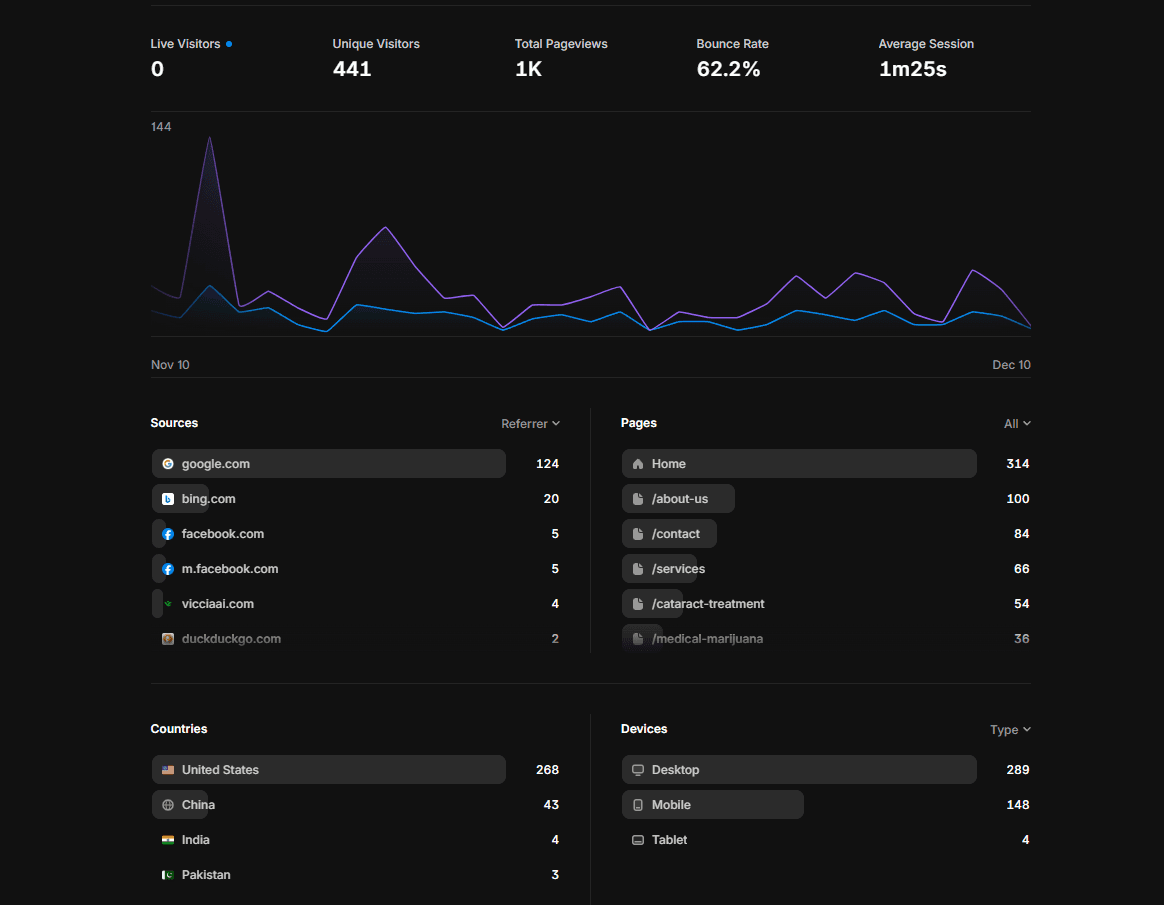 The Results: Measuring Success The revamp successfully moved ClearVue Now from the back pages of search results to the first page of Google, resulting in a dramatic shift in performance metrics: MetricOutcomeSearch RankingTop of Page 1 for core local keywordsMonthly Traffic400+ Unique VisitorsUser Engagement1m 13s Average Session DurationConversion3–5 New Leads generated monthly