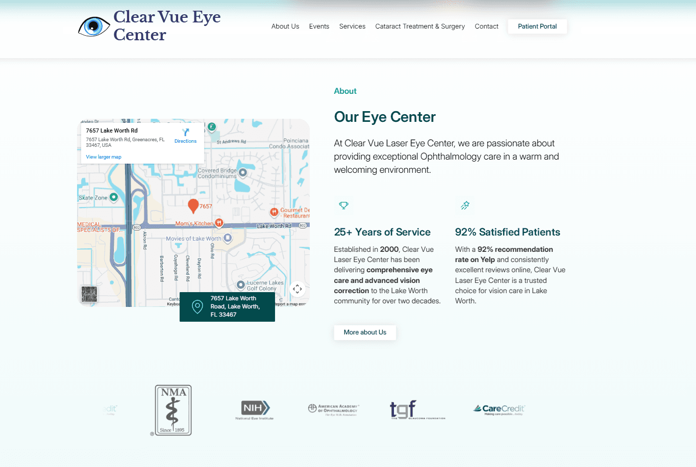 The Strategy: SEO-First Revamp The goal wasn't just to make the site look better, but to make it "search-able." We focused on a heavy SEO integration targeting high-intent local keywords and a user experience (UX) designed to keep visitors on the page.Local SEO Target: Optimized specifically for competitive terms like "ophthalmologist lake worth" and "lake worth eye care." Performance Optimization: Improved load speeds and mobile responsiveness to ensure a professional first impression.